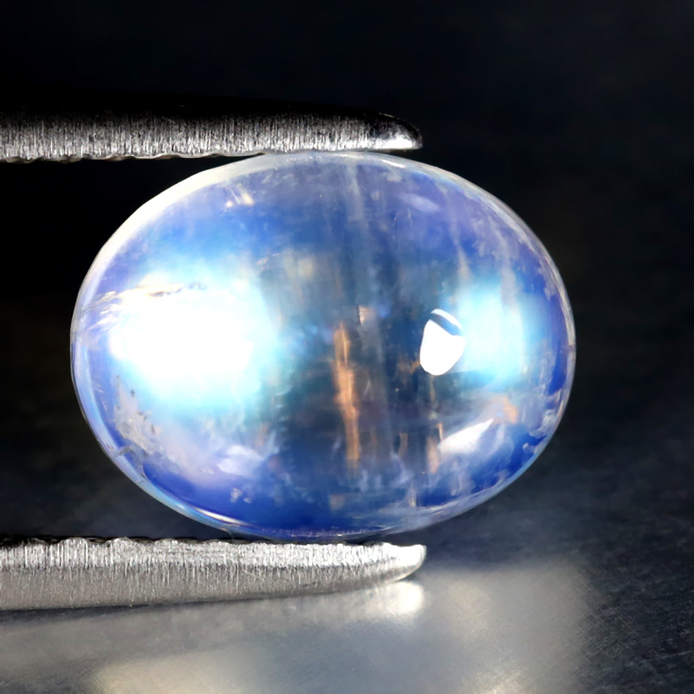 2.23 ct Oval Cabochon (9.13 x 7.09 mm) 100% Natural Rainbow Blue Moonstone