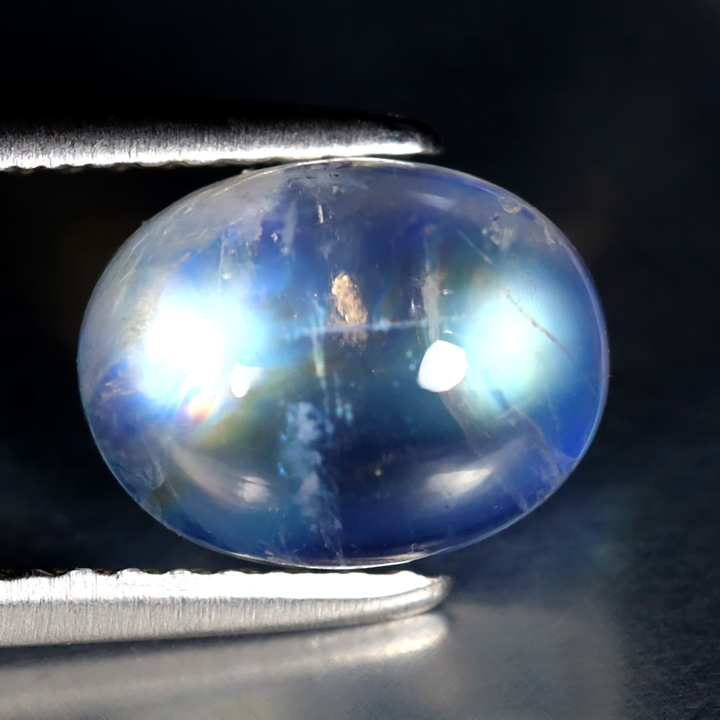 2.51 ct Phenomenal Oval Cabochon (9.02 x 7.02 mm) Natural Rainbow Blue Moonstone