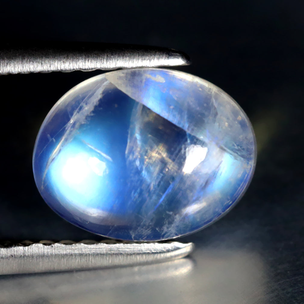 2.14 ct Charming Oval Cabochon (9.01 x 7.03 mm) Natural Rainbow Blue Moonstone