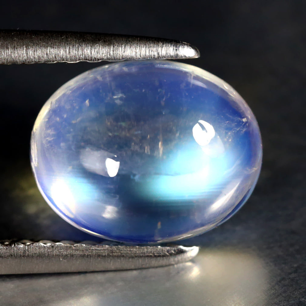 2.34 ct Shimmering Oval Cabochon (9.16 x 7.30 mm) Natural Rainbow Blue Moonstone