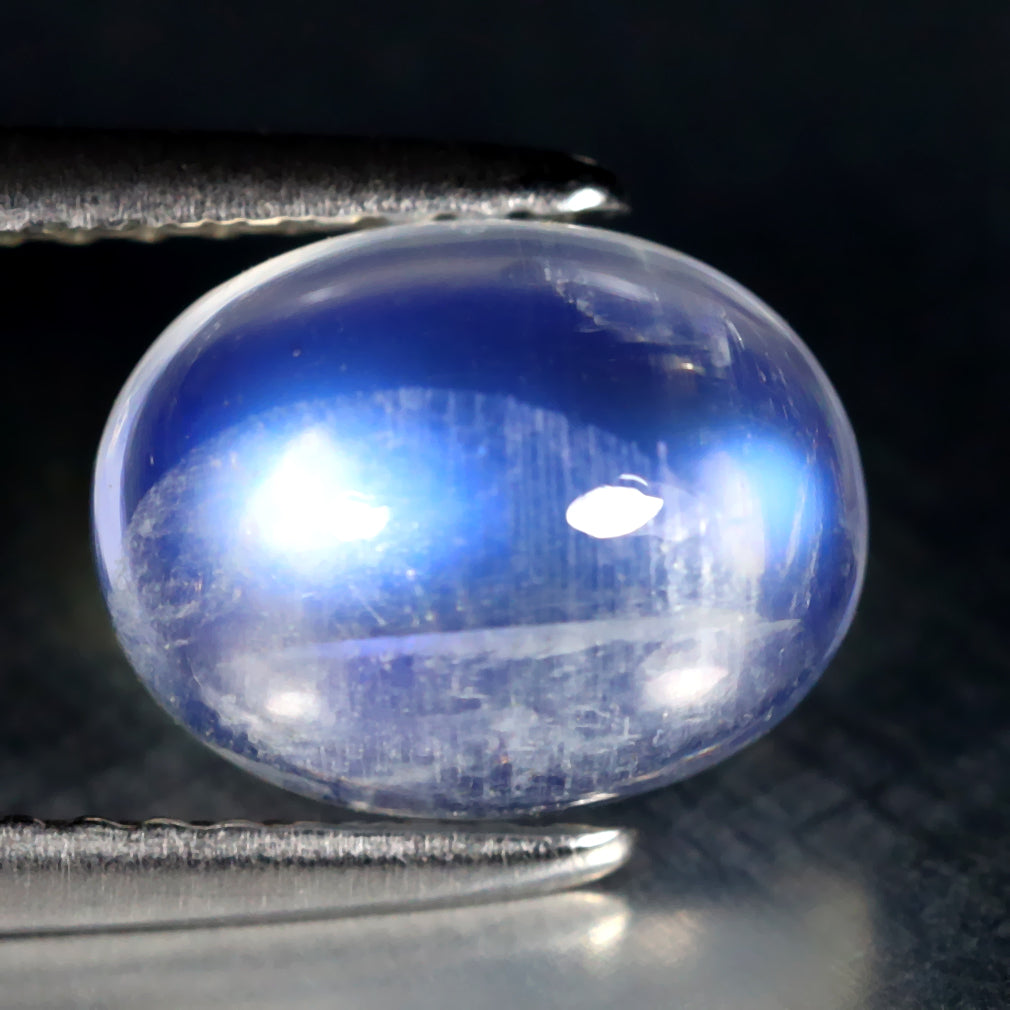 1.92 ct Excellent Oval Cabochon (9.05 x 7.00 mm) Natural Rainbow Blue Moonstone