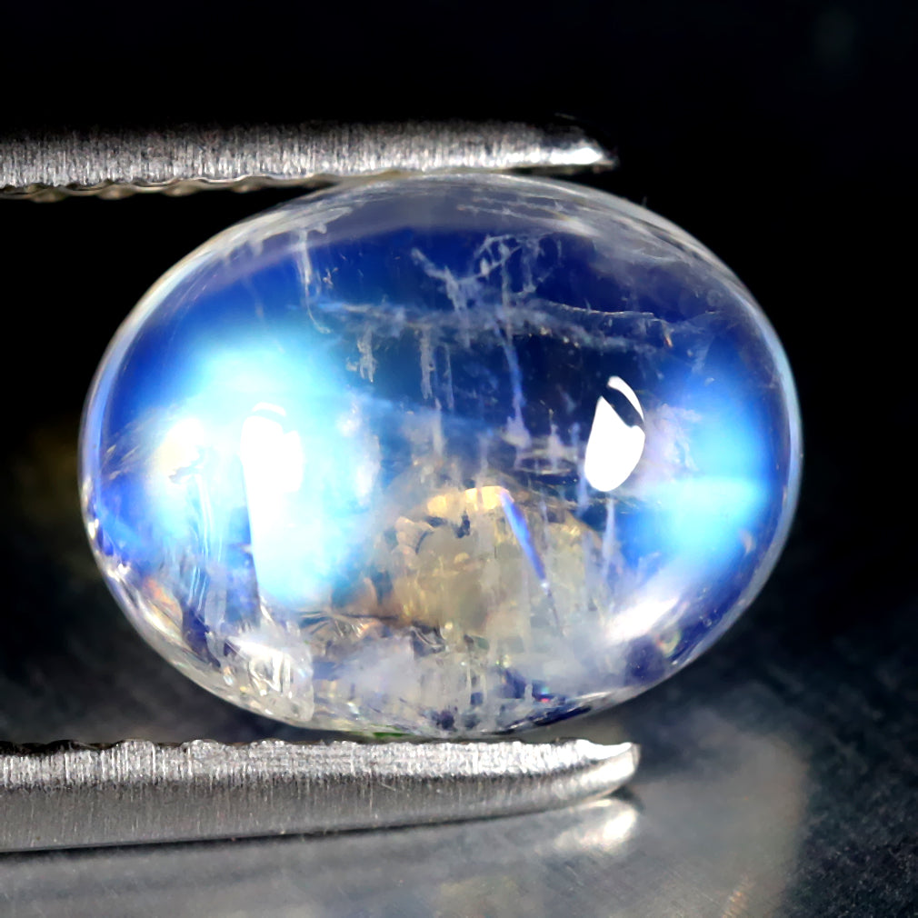 2.26 ct Oval Cabochon (9.16 x 7.25 mm) 100% Natural Rainbow Blue Moonstone