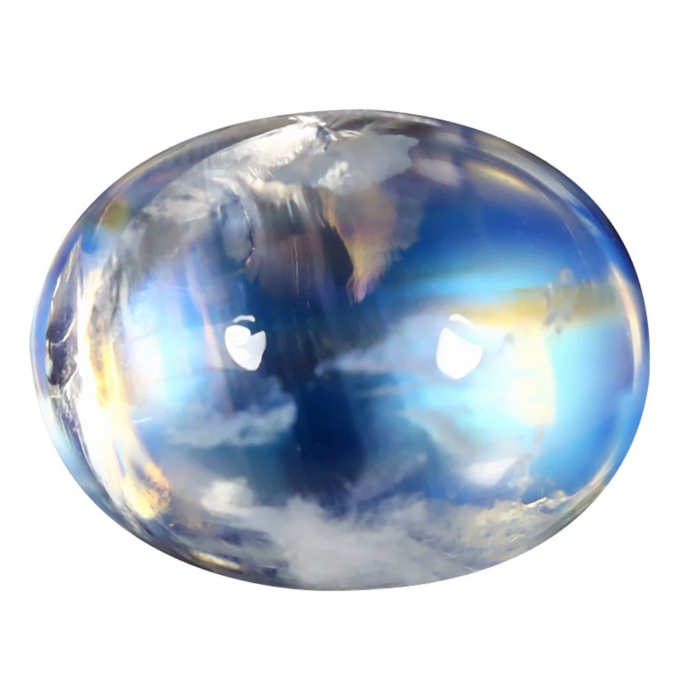 2.97ct Attractive Oval Cabochon (9.06 x 7.10 mm) Natural Rainbow Blue Moonstone