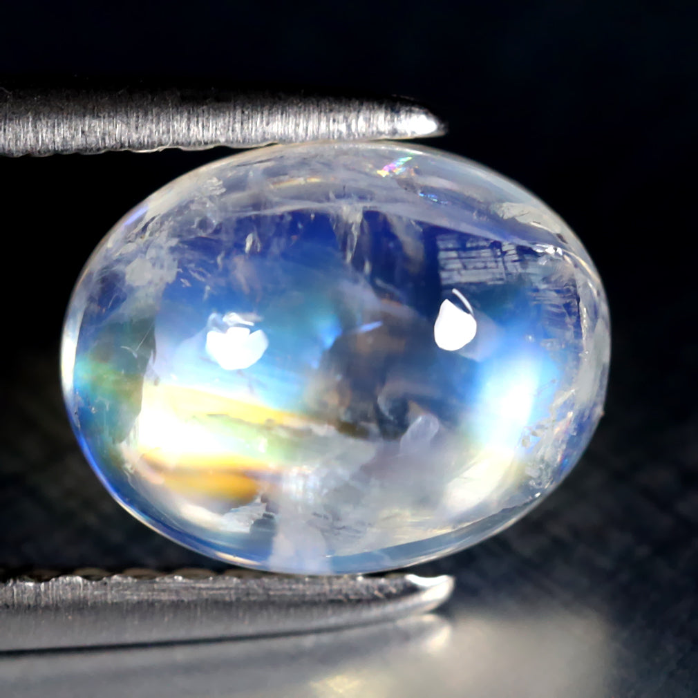2.27 ct Premium Oval Cabochon (9.08 x 7.16 mm) Natural Rainbow Blue Moonstone