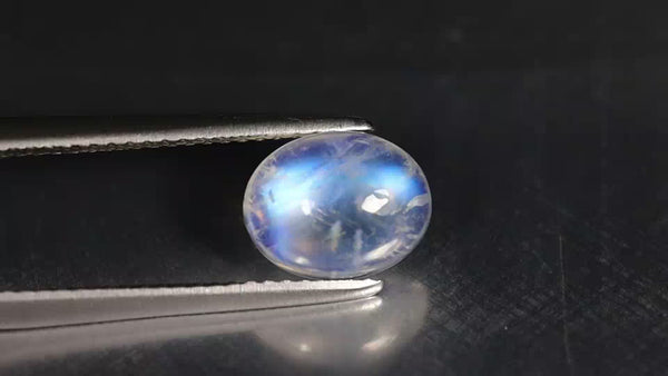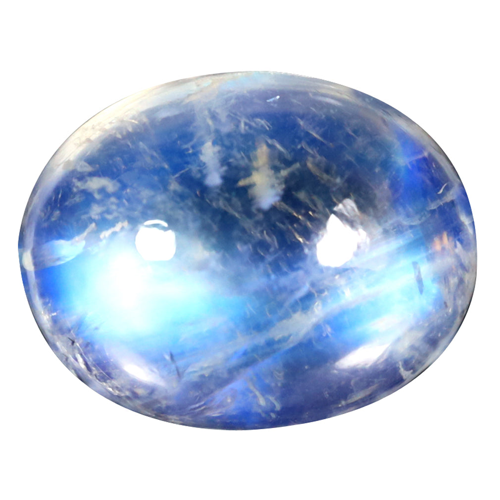 2.18 ct Superior Oval Cabochon (9.05 x 7.10 mm) Natural Rainbow Blue Moonstone