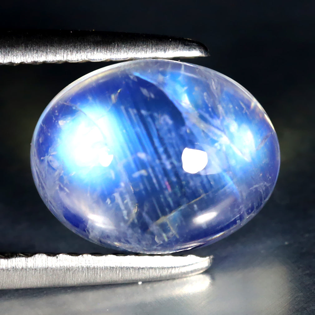 2.24 ct Oval Cabochon (9.20 x 7.25 mm) 100% Natural Rainbow Blue Moonstone