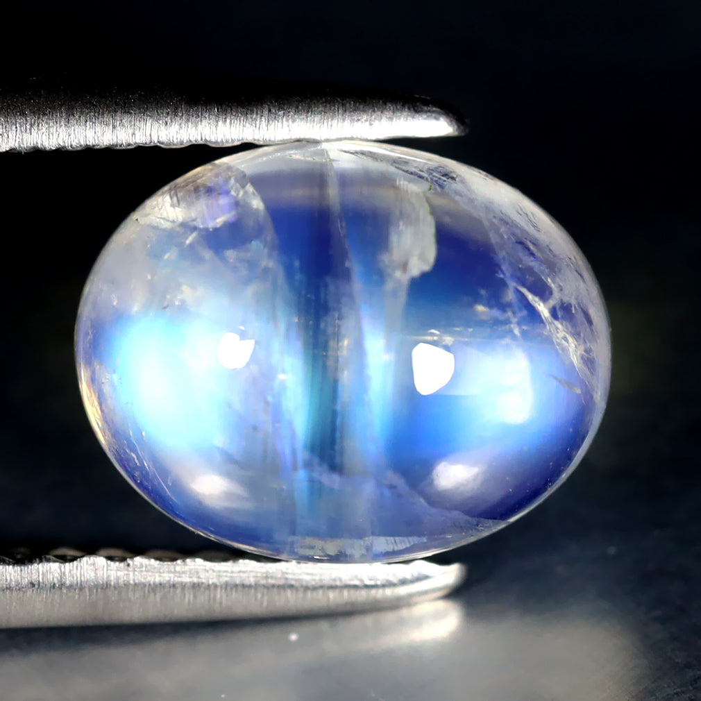 2.51 ct Remarkable Oval Cabochon (9.06 x 7.16 mm) Natural Rainbow Blue Moonstone