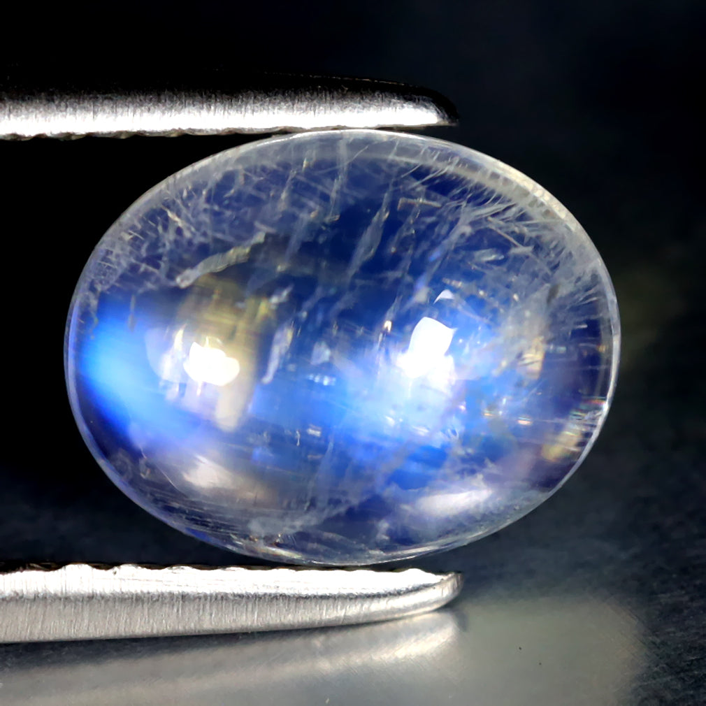 2.07 ct Wonderful Oval Cabochon (9.13 x 7.18 mm) Natural Rainbow Blue Moonstone