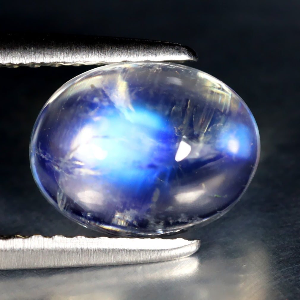 2.03 ct Oval Cabochon (8.95 x 6.94 mm) 100% Natural Rainbow Blue Moonstone