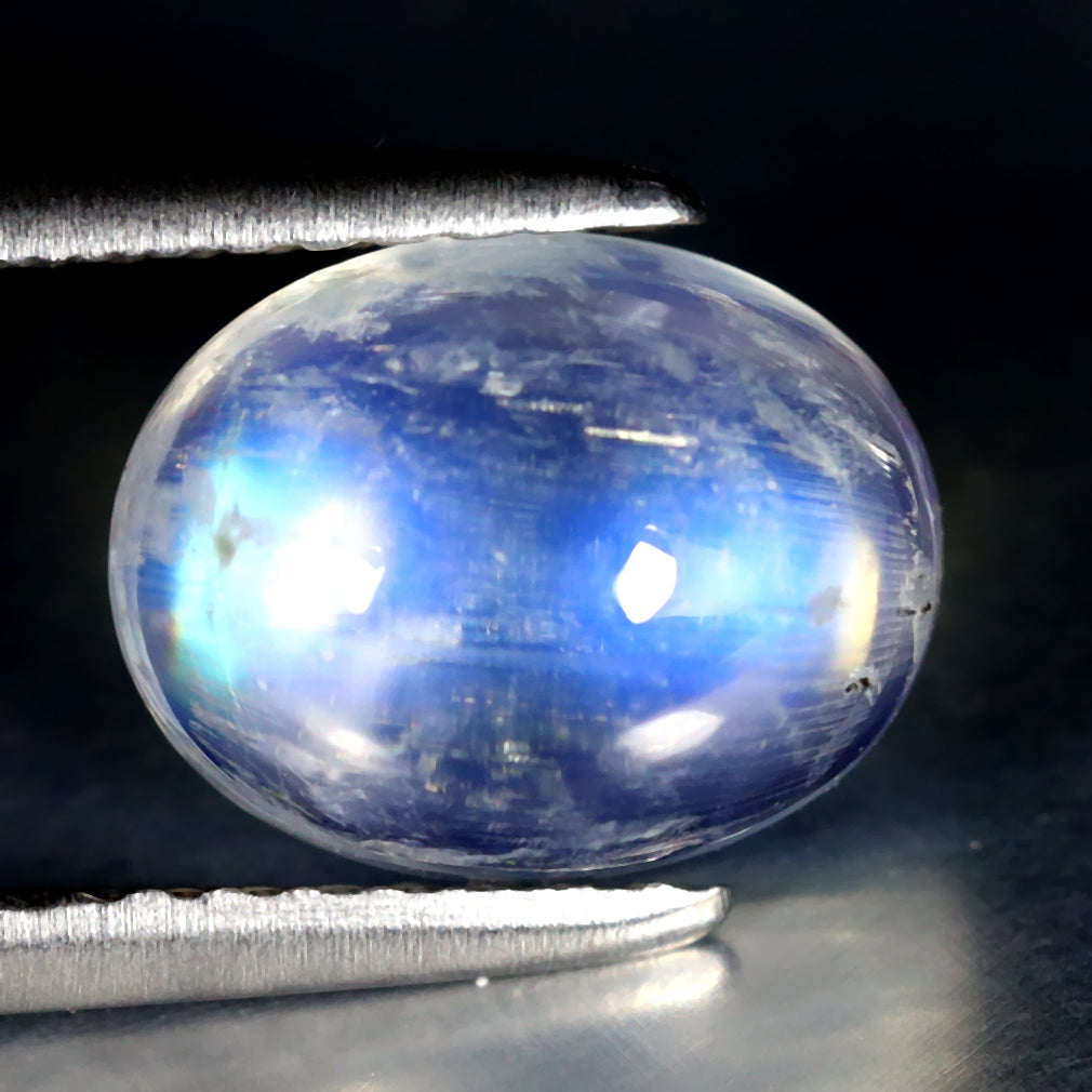 2.40 ct Oval Cabochon (9.13 x 7.23 mm) 100% Natural Rainbow Blue Moonstone