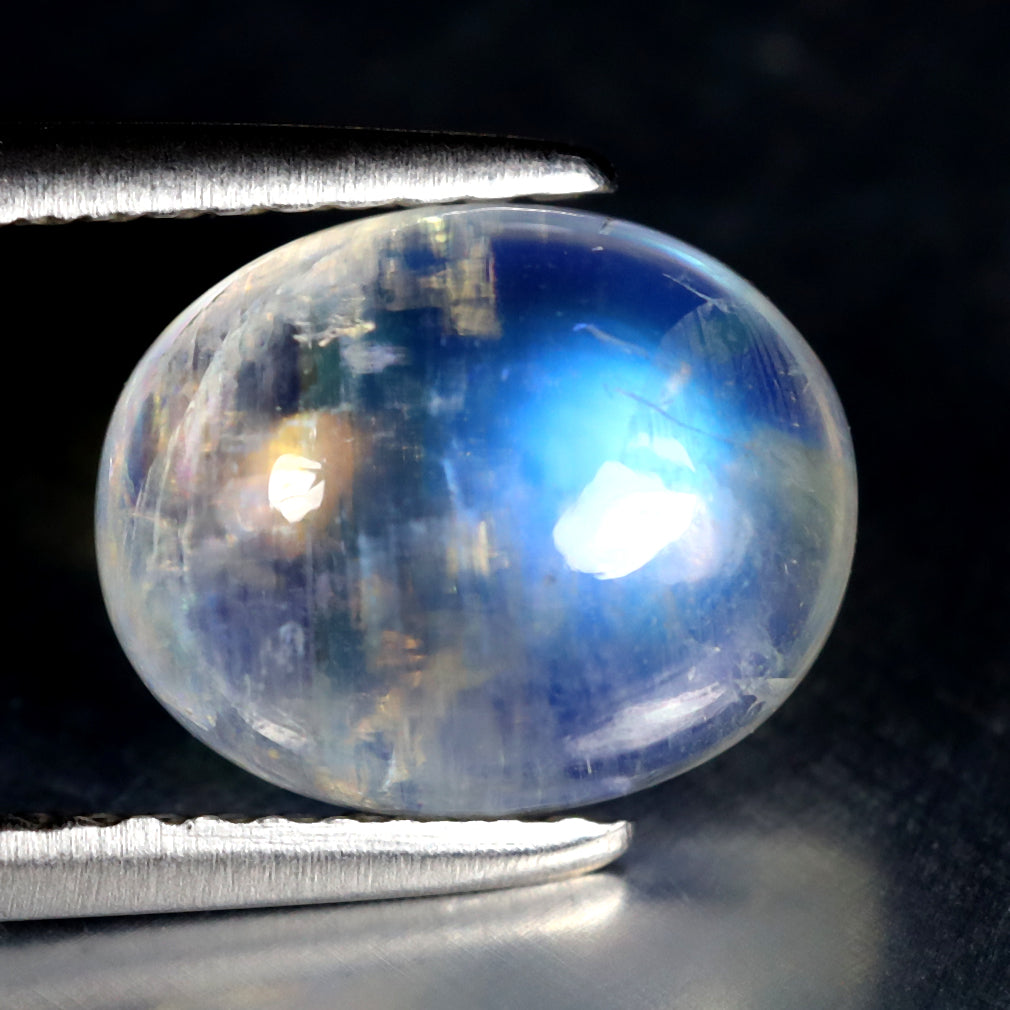 2.45 ct Lovely Oval Cabochon (9.81 x 7.88 mm) Natural Rainbow Blue Moonstone
