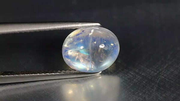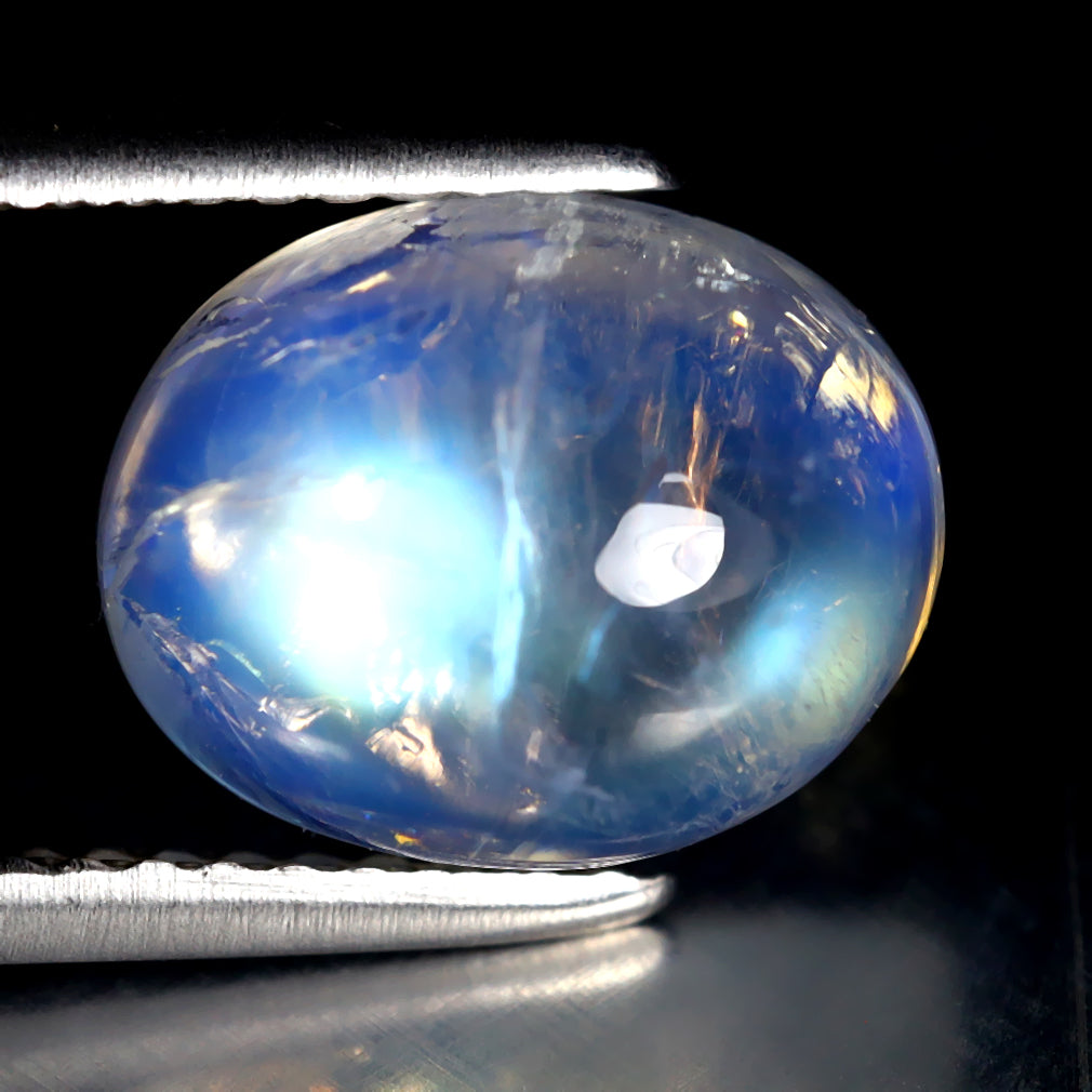 3.60 ct Stunning Oval Cabochon (10.11 x 8.11 mm) Natural Rainbow Blue Moonstone