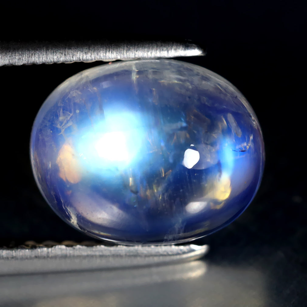 3.48 ct Superb Oval Cabochon (9.98 x 7.96 mm) Natural Rainbow Blue Moonstone