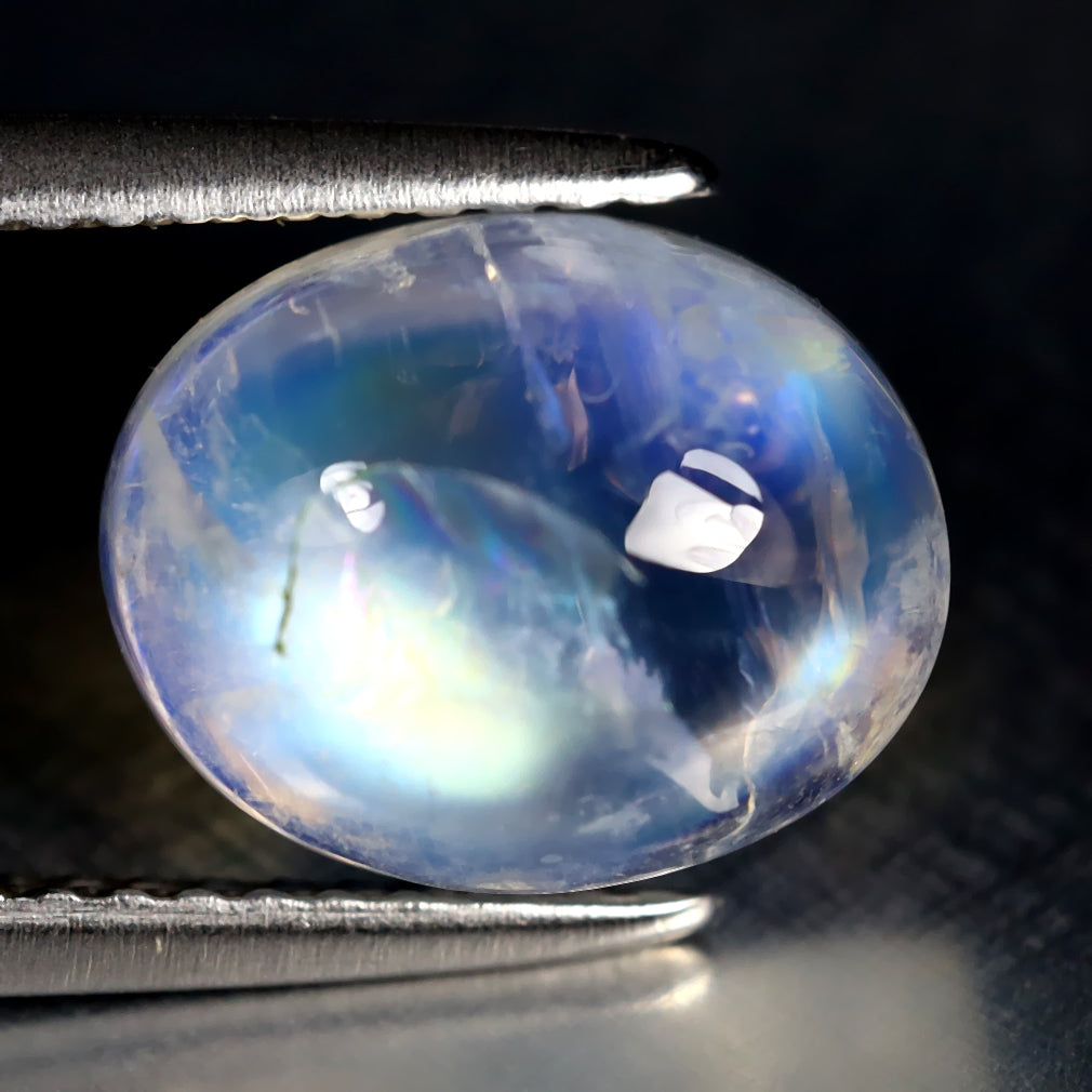 3.77 ct Amazing Oval Cabochon (10.18 x 8.17 mm) Natural Rainbow Blue Moonstone