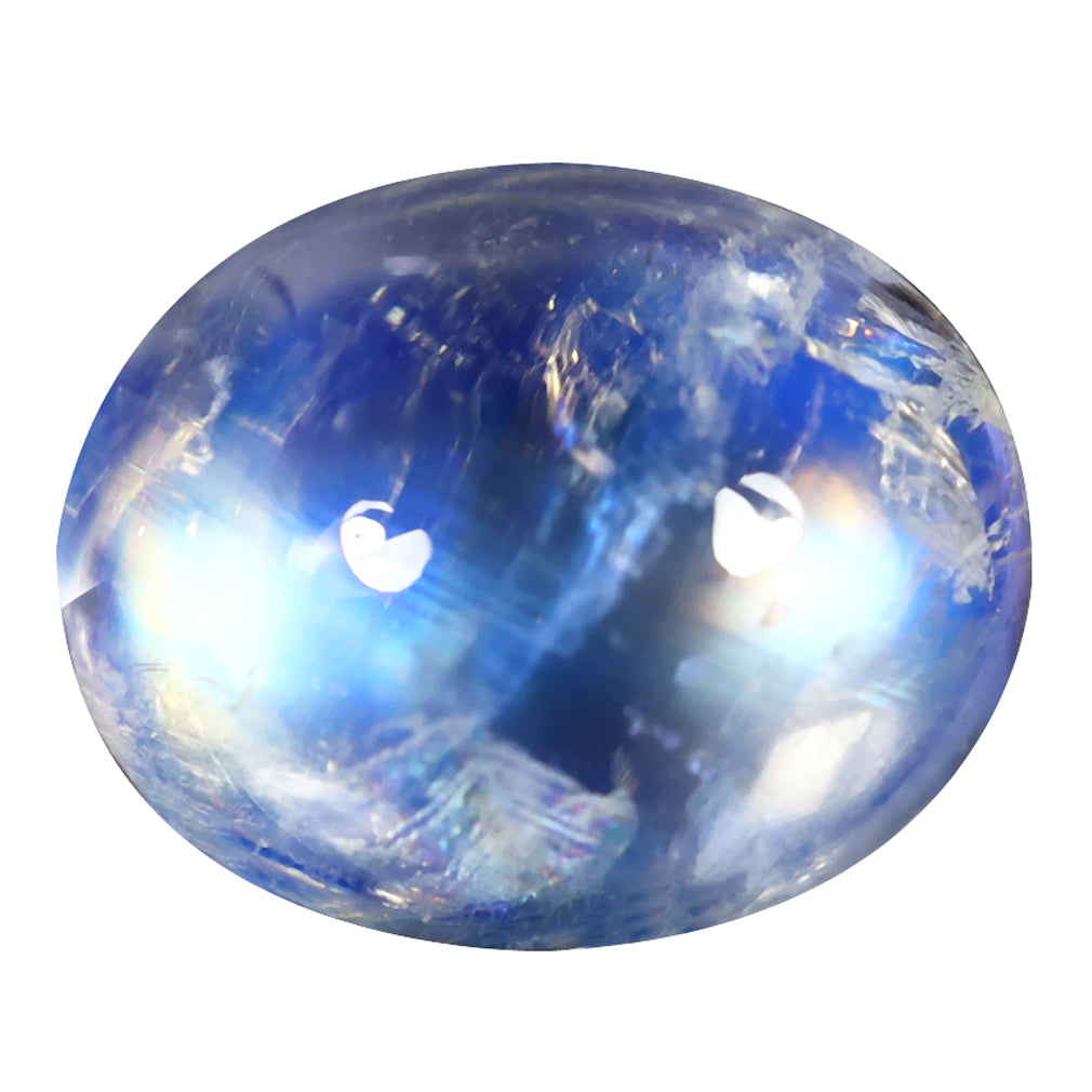 3.06 ct Romantic Oval Cabochon (10.10 x 8.20 mm) Natural Rainbow Blue Moonstone