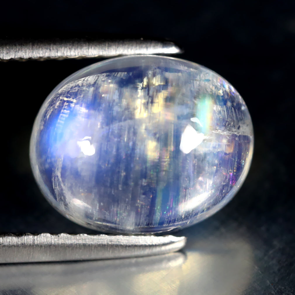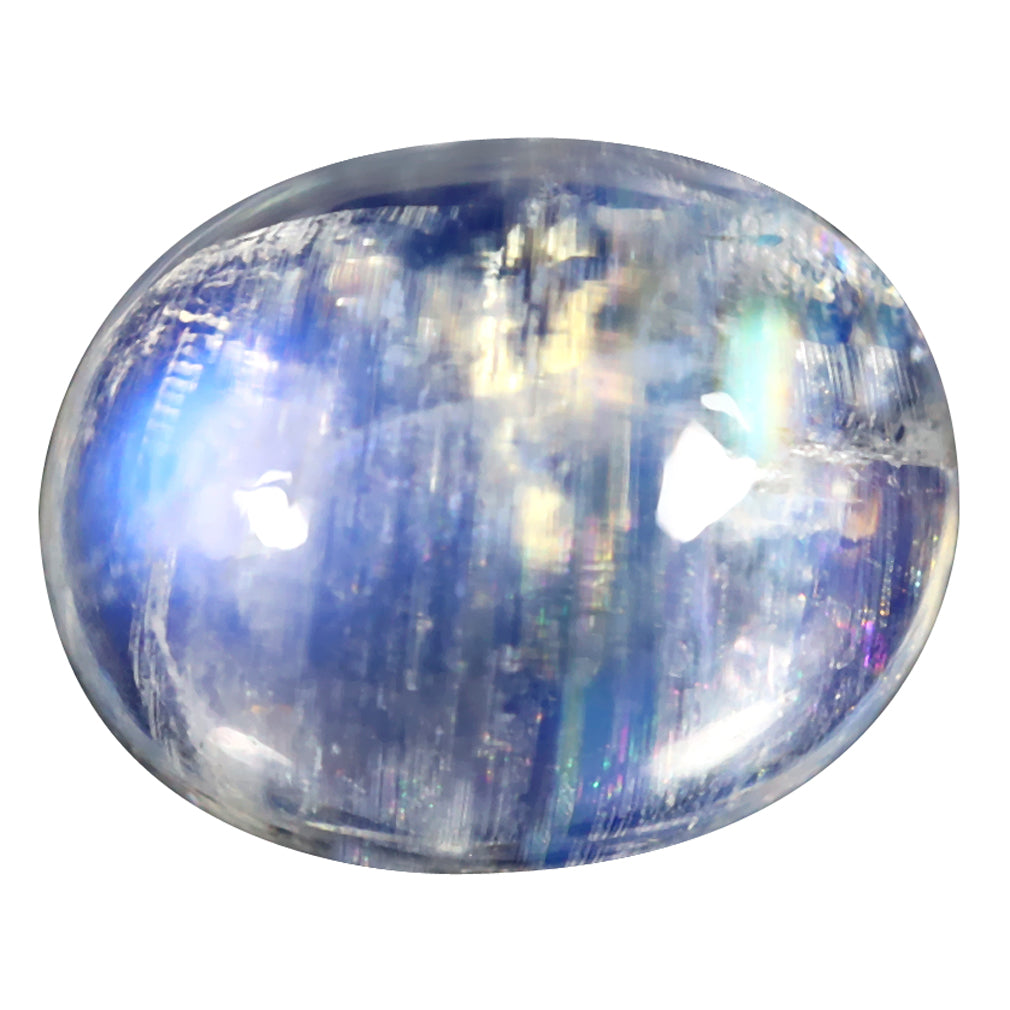 3.17 ct Stunning Oval Cabochon (10.11 x 8.07 mm) Natural Rainbow Blue Moonstone