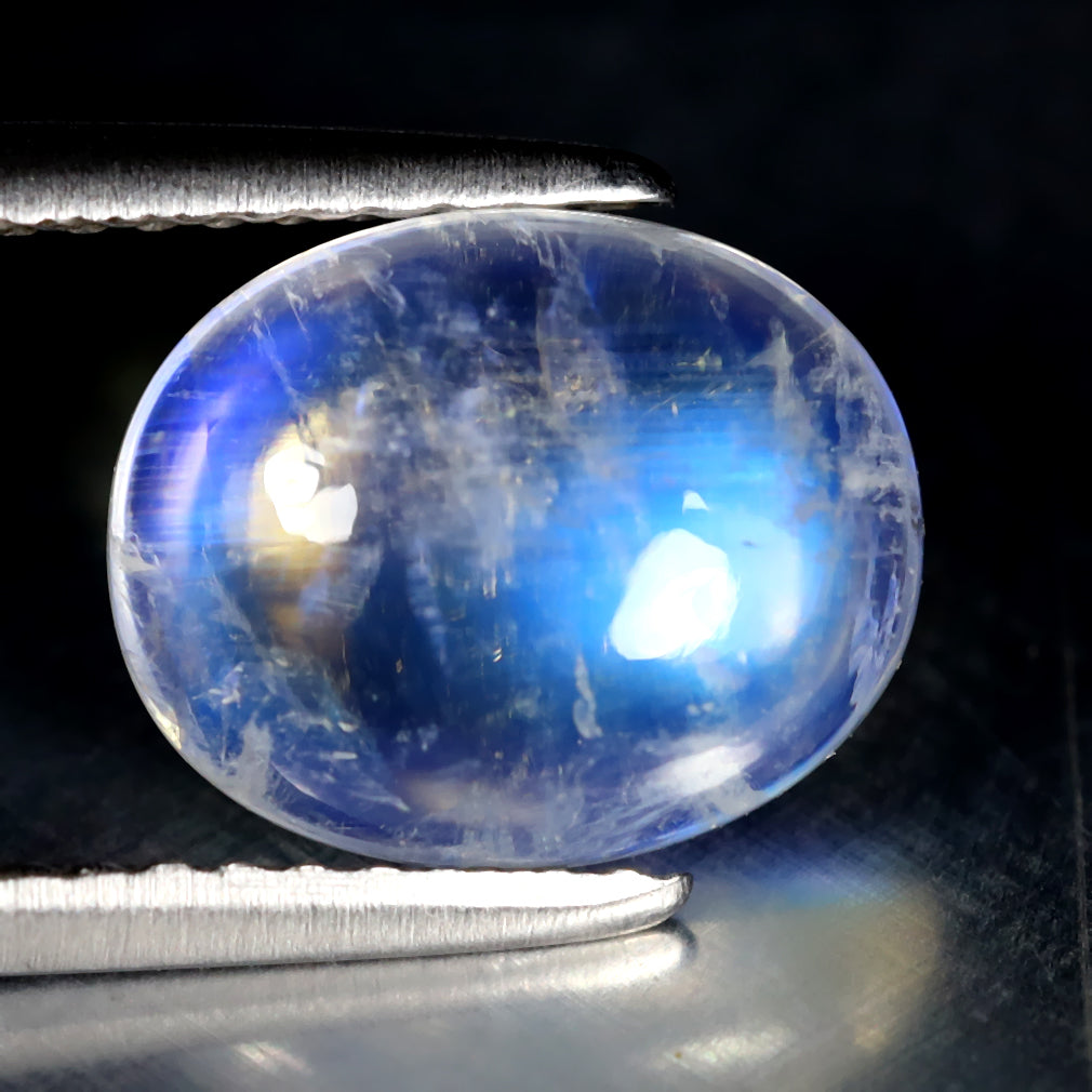 2.24 ct Flashing Oval Cabochon (10.03 x 8.13 mm) Natural Rainbow Blue Moonstone