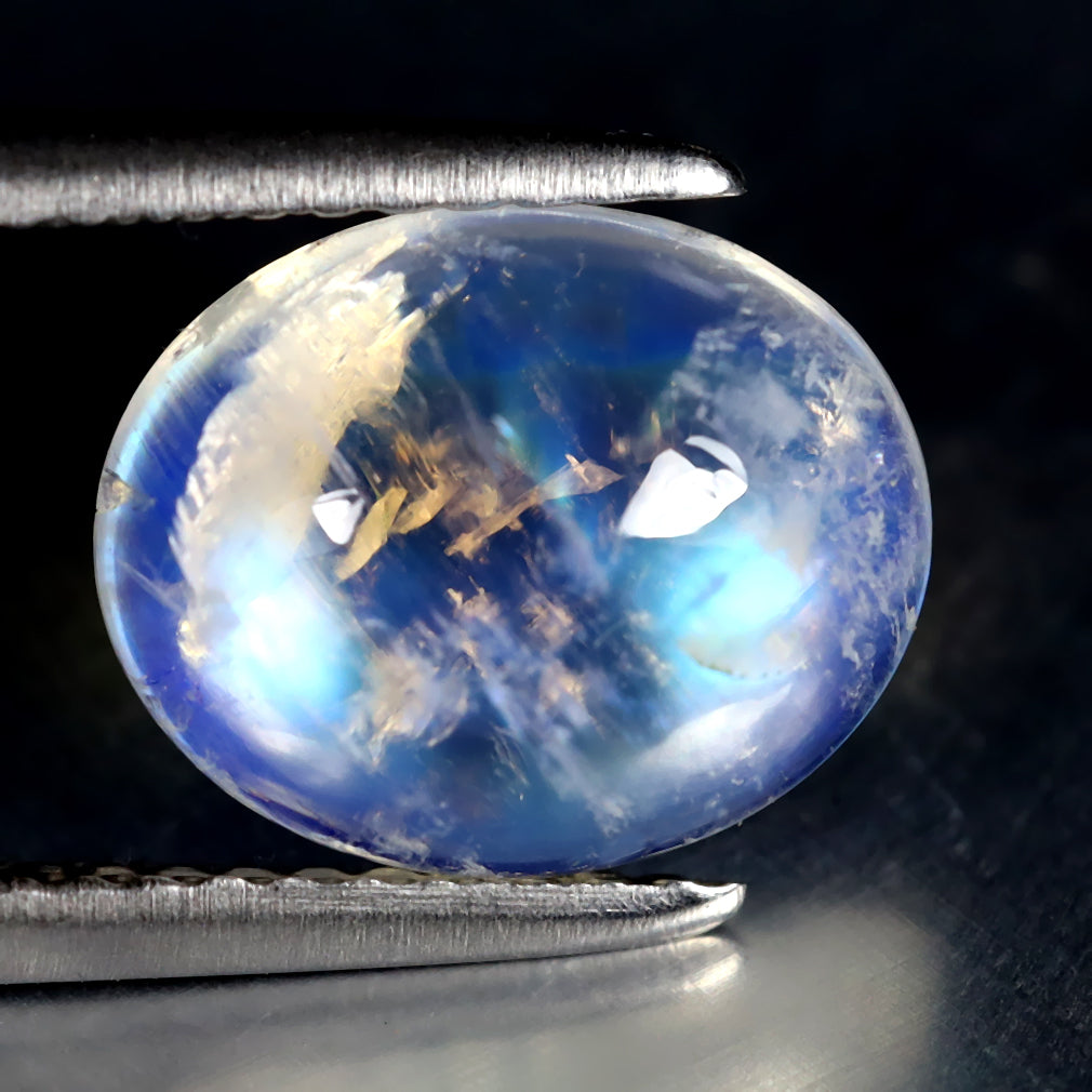 2.64 ct Oval Cabochon (10.20 x 8.26 mm) 100% Natural Rainbow Blue Moonstone