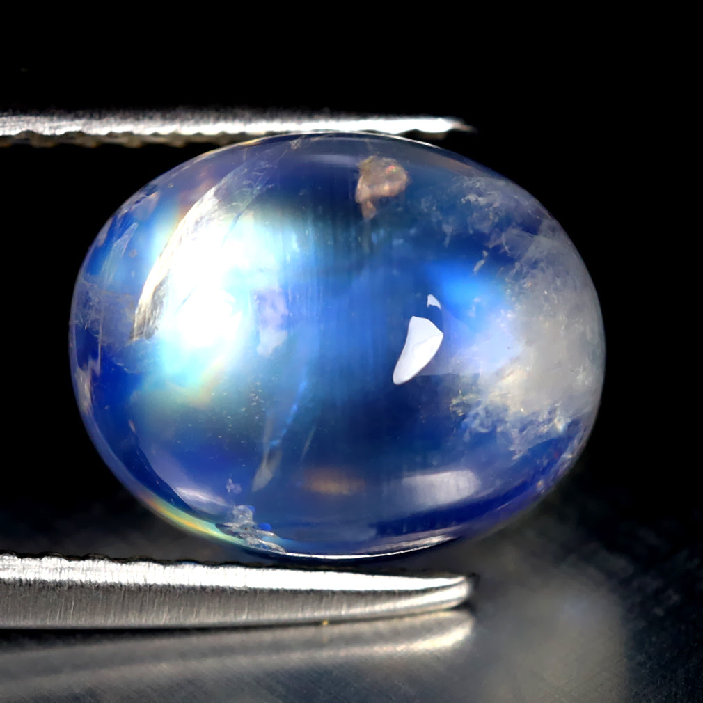 3.40 ct Oval Cabochon (10.06 x 8.08 mm) 100% Natural Rainbow Blue Moonstone