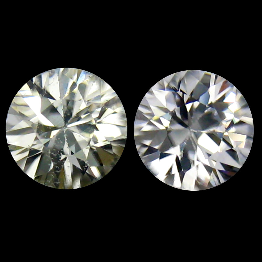 0.96 ct (2pcs) Fantastic MATCHING PAIR 5 mm Round Un-Heated White Zircon