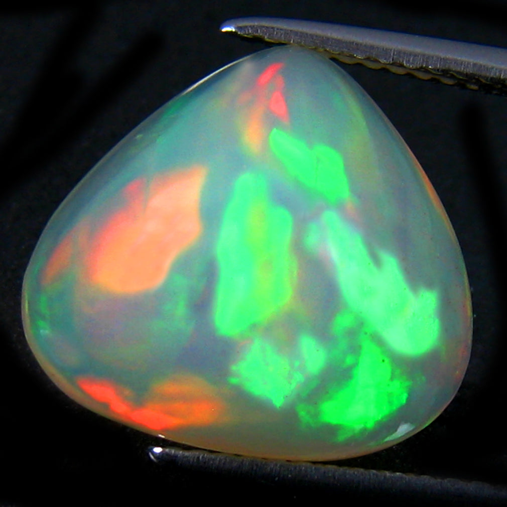 6.35 ct Pear Cabochon (13.59 x 14.67 mm) Ethiopian Natural Rainbow Opal