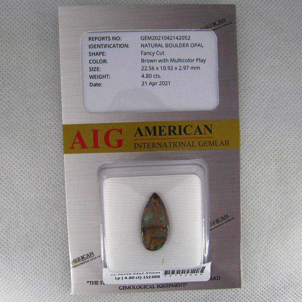 4.80 ct AIG Certified Fancy (22.56 x 10.92mm) 100% Natural Boulder Opal