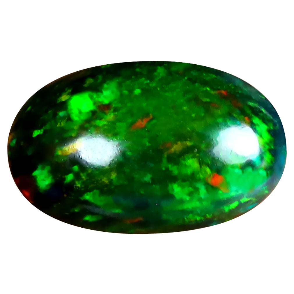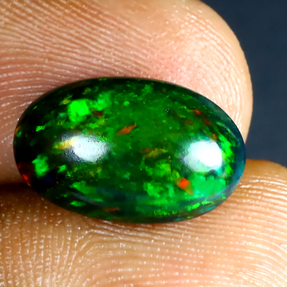 3.67 ct Oval Cabochon (14.20 x 8.95 mm) Flashing Natural Black Opal Stone