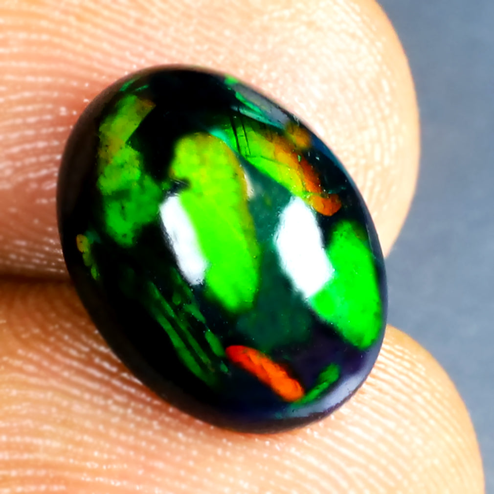 3.14 ct Best Oval Cabochon(13.06 x 9.80 mm)Flashing Natural Black Opal Gemstone