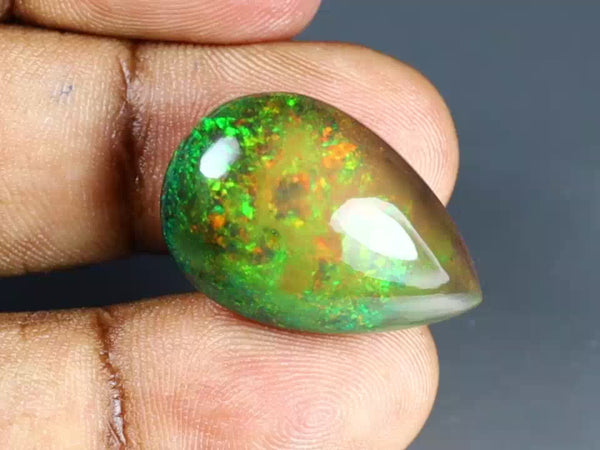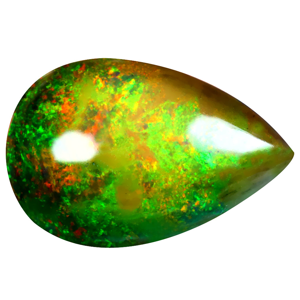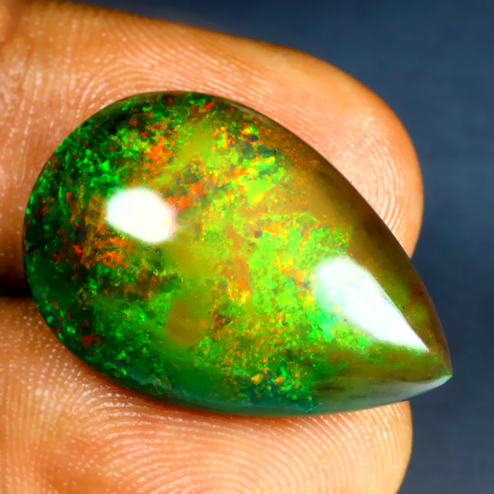15.80 ct Pear Cabochon (24.42 x 16.49 mm) Ethiopian Flashing Black Opal Gemstone