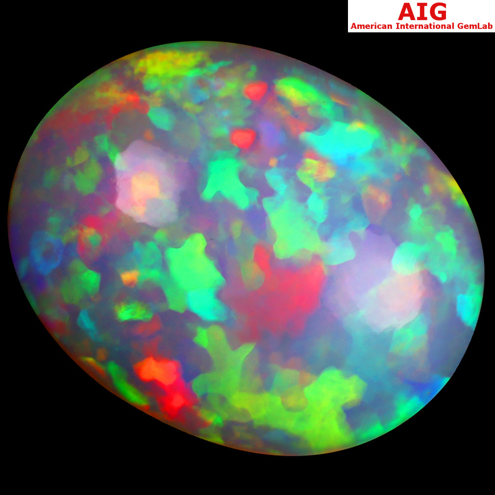 15.48 ct AIG CERTIFIED OVAL CABOCHON(22.79 x 18.29 mm)FLASHING WELO RAINBOW OPAL