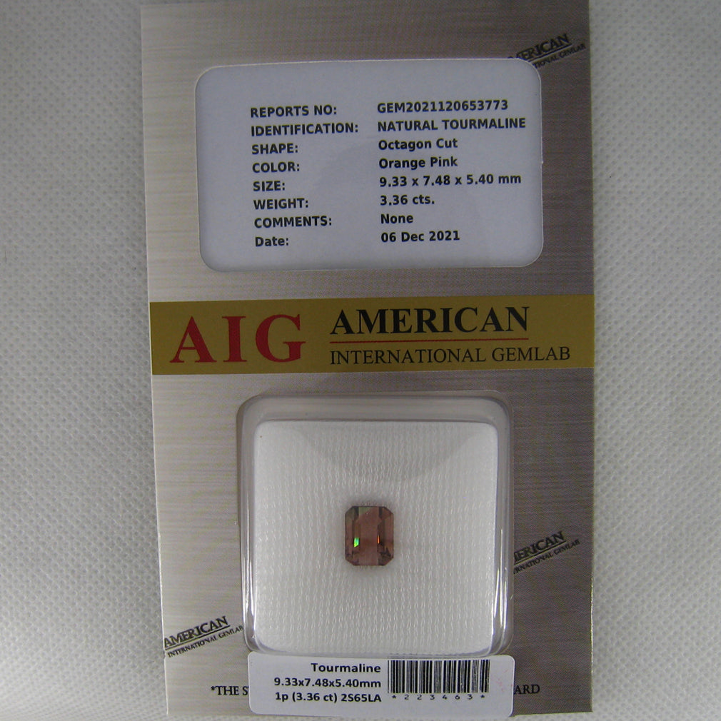 3.36 ct AIG Certified Octagon (9.33 x 7.48 mm) Natural Orange Pink Tourmaline