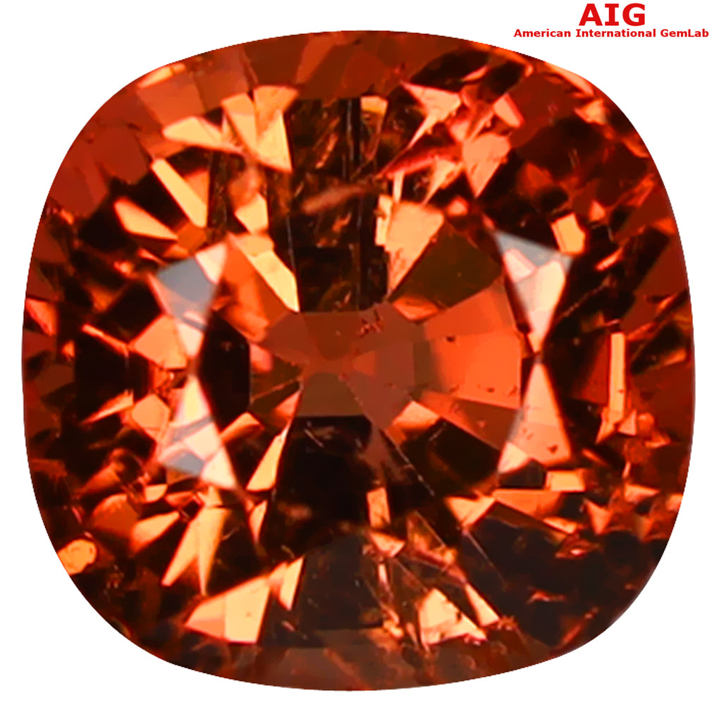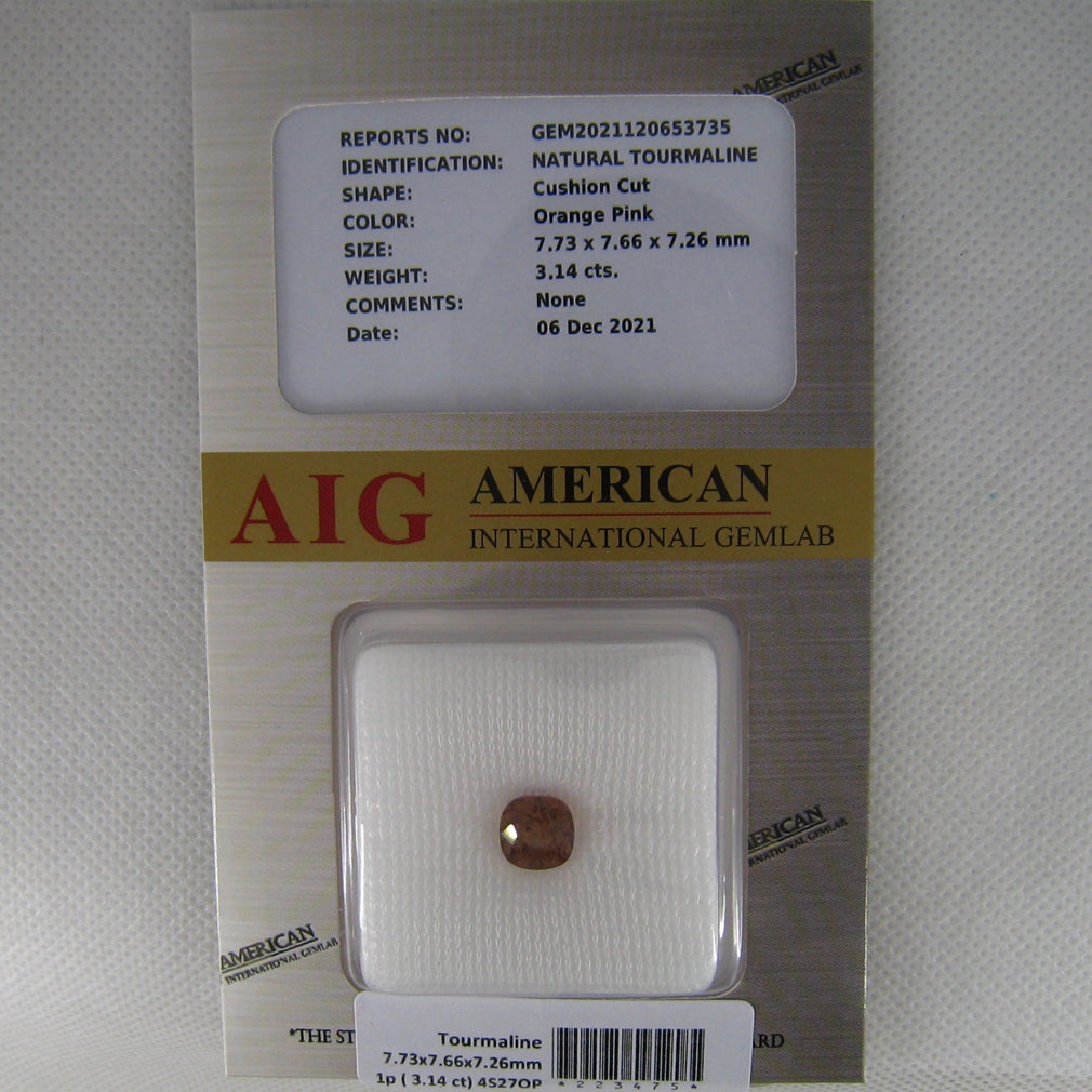 3.14 ct AIG Certified Remarkable Cushion (7.73 x 7.66 mm) Orange Pink Tourmaline