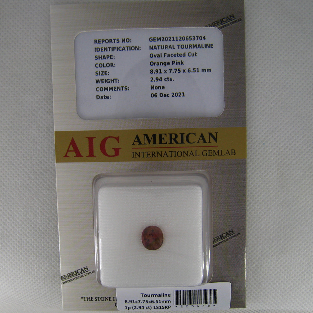 2.94 ct AIG Certified Extraordinary Oval (8.91 x 7.75 mm) Orange Pink Tourmaline