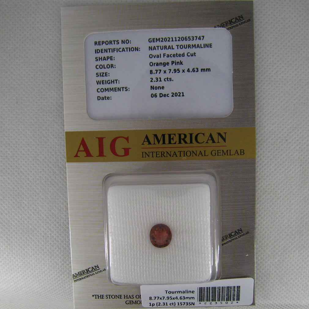 2.31 ct AIG Certified Great looking Oval (8.77 x 7.95 mm) Orange Pink Tourmaline