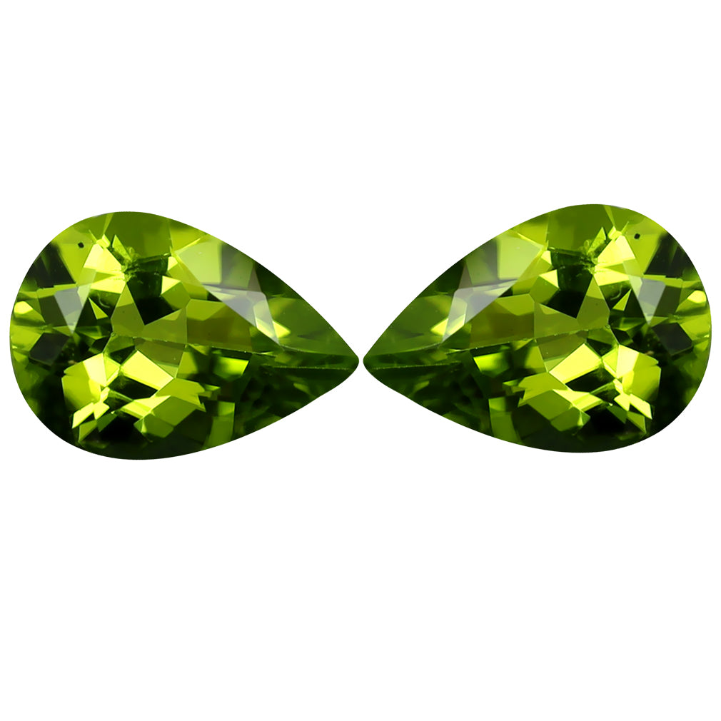 3.34 ct(2pcs) MATCHING PAIR Pear (9.86 x 6.80 mm) Natural Green Peridot