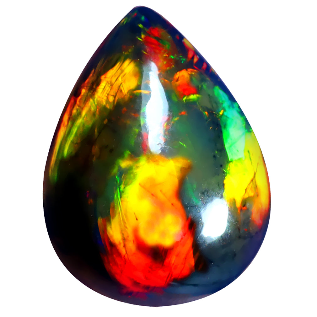 6.10 ct Pear Cabochon (16.08 x 12.12 mm) Ethiopian Flashing Black Opal
