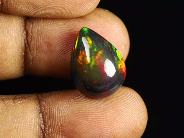 6.10 ct Pear Cabochon(16.08 x 12.12 mm)Ethiopian 360 Degree Flashing Black Opal