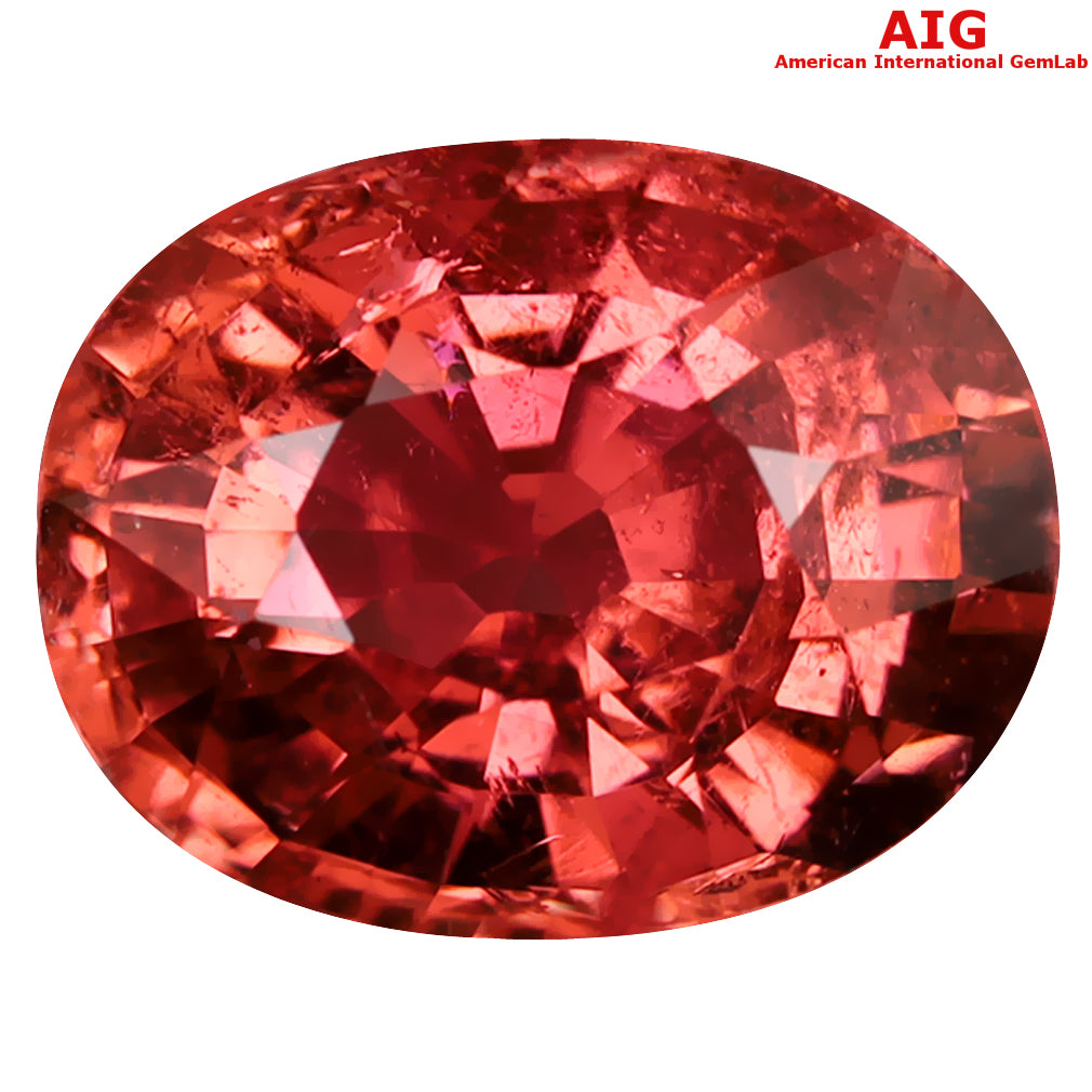 9.32 ct AIG Certified Oval(14.45 x 11.41 mm)Un-Heated Reddish Orange Tourmaline