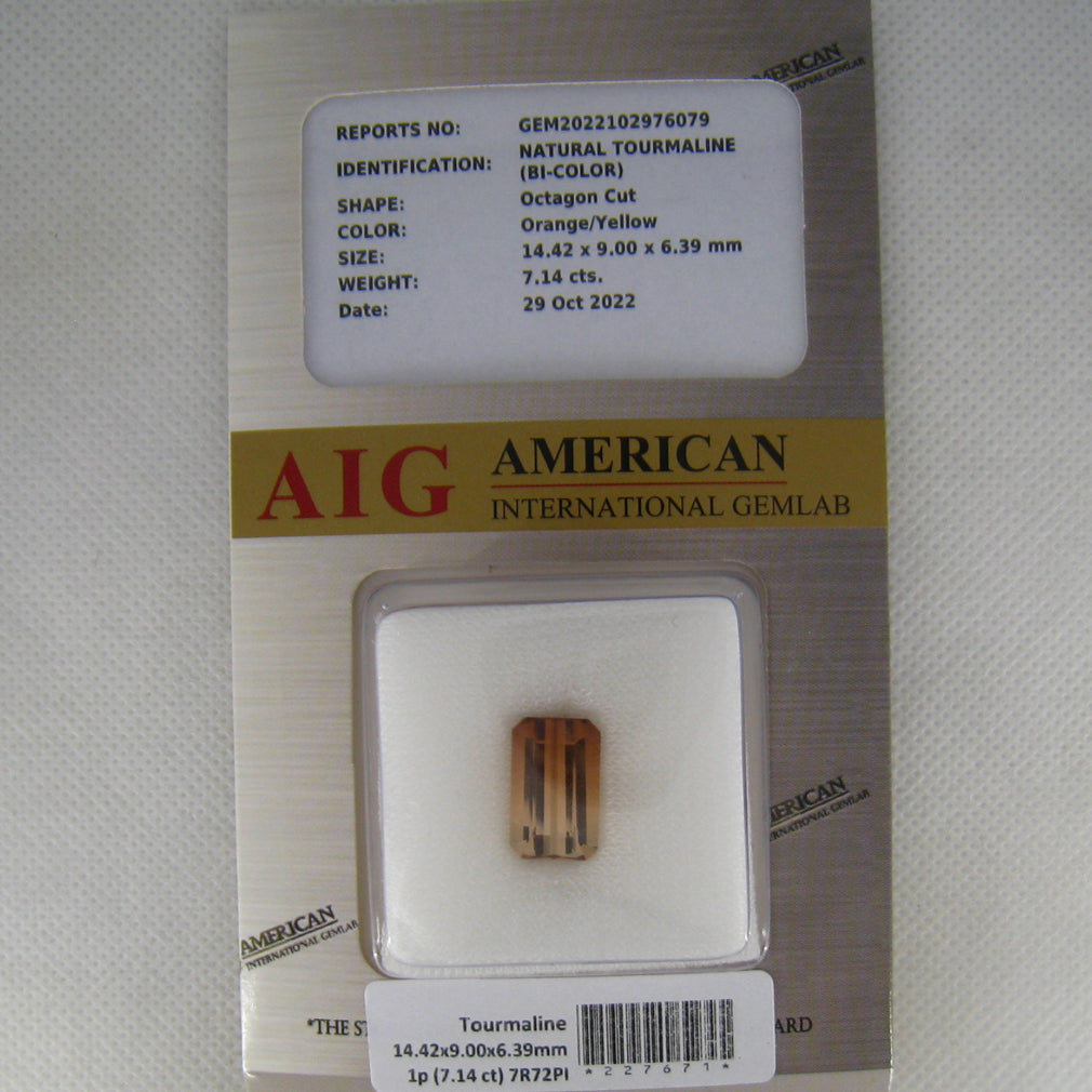 7.14 ct AIG Certified Octagon(14.42 x 9.00 mm) Natural BiColor Tourmaline