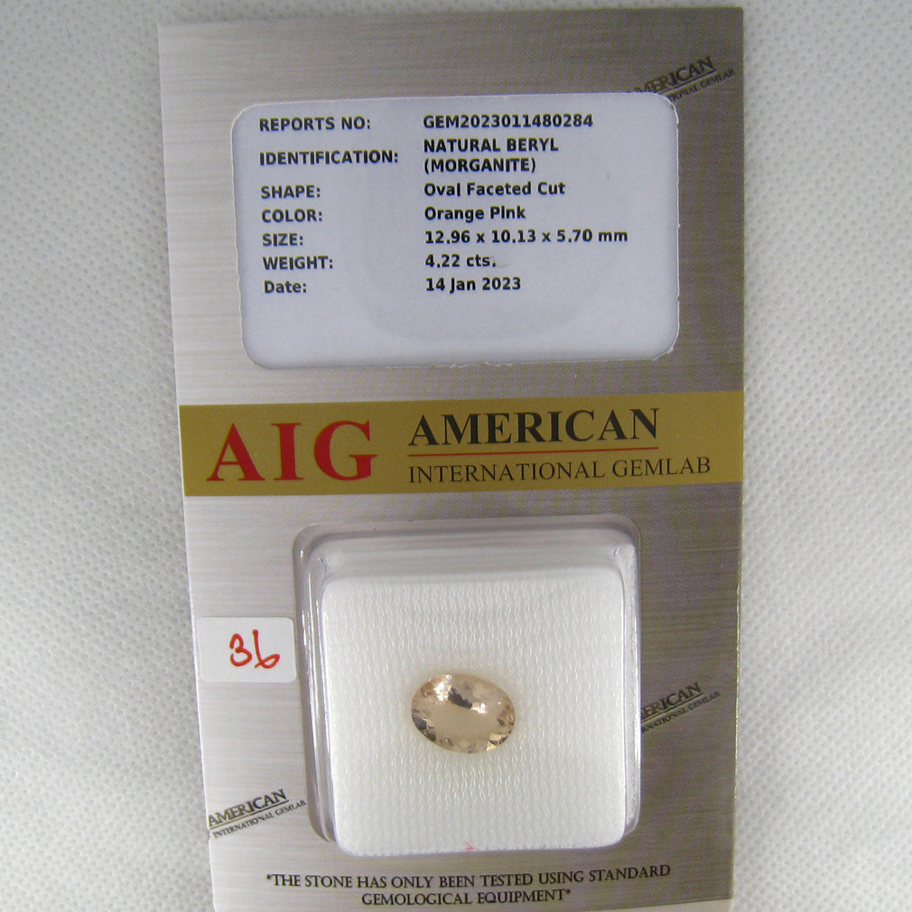 4.22 ct AIG Certified Oval (12.96 x 10.13 mm) Orange Pink Morganite