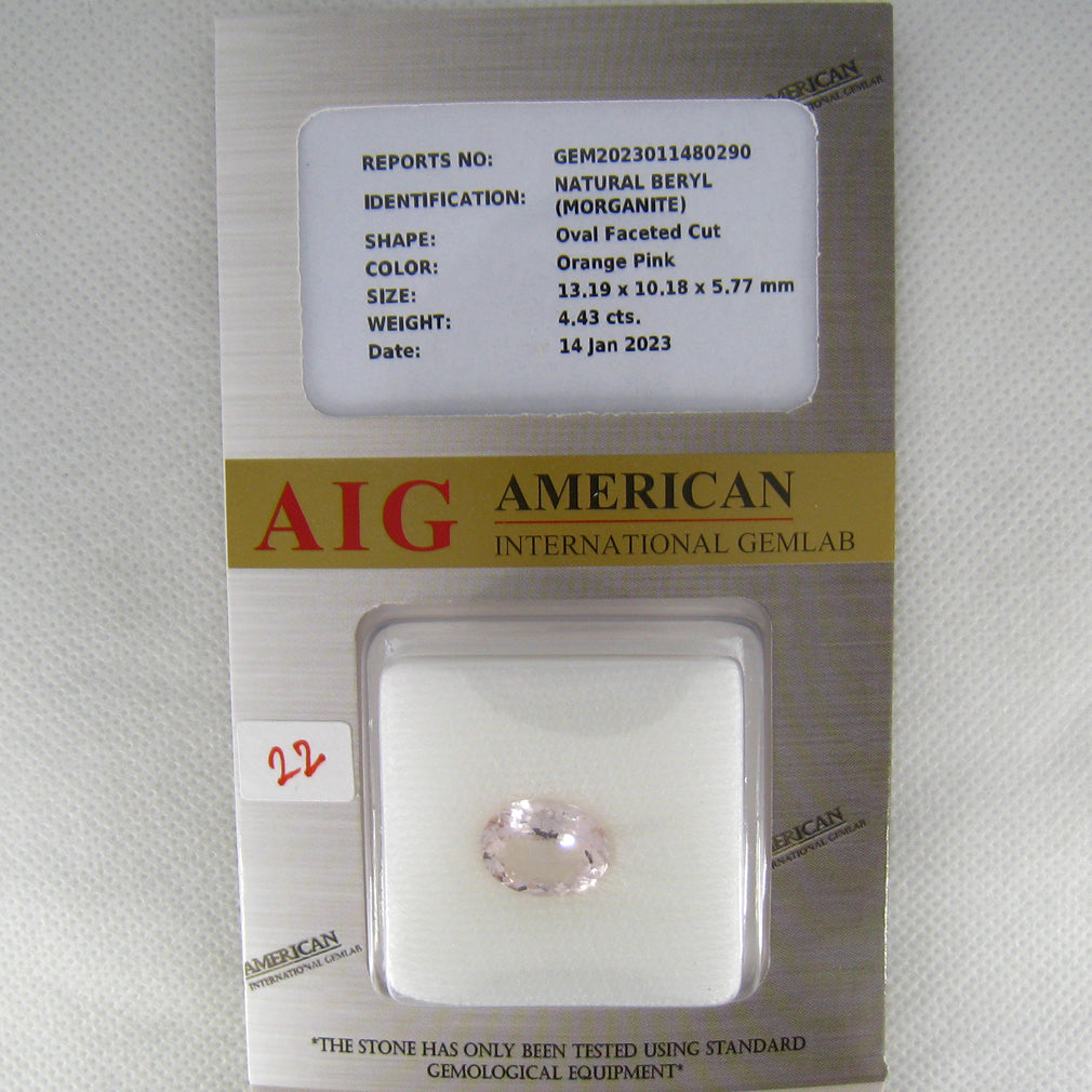 4.43 ct AIG Certified Oval(13.19 x 10.18 mm) Orange Pink Morganite