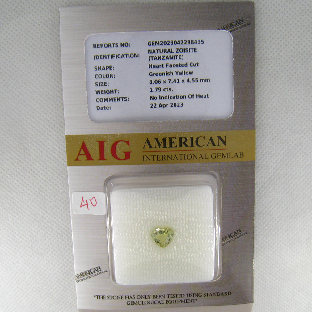 1.79 ct AIG Certified Wonderful Heart (8.06 x 7.41 mm) Greenish Yellow Tanzanite