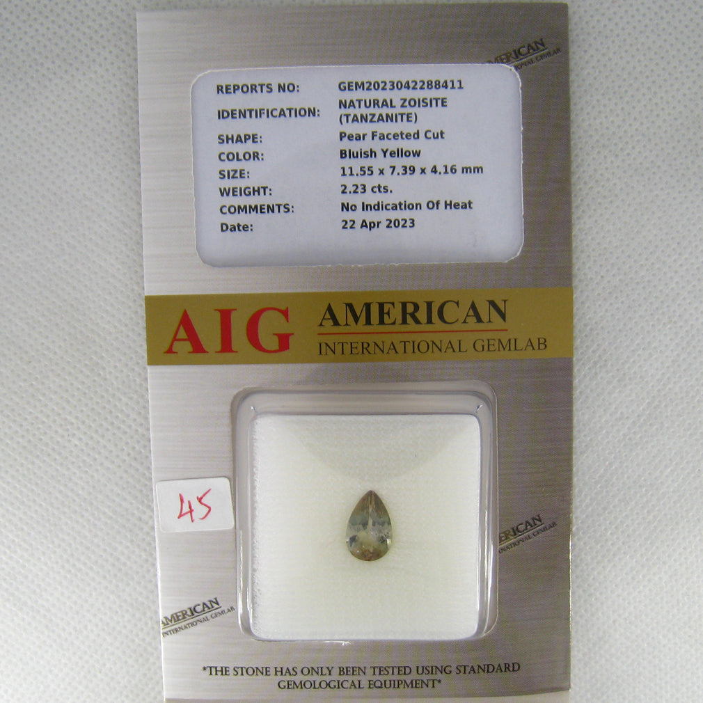 2.23 ct AIG Certified Pear(11.55 x 7.39 mm) Natural Blue Yellow Tanzanite