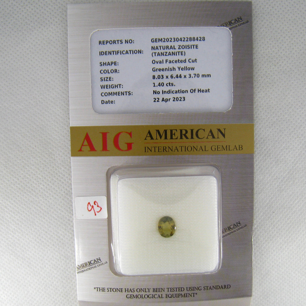 1.40 ct AIG Certified Oval (8.03 x 6.44 mm) Greenish Yellow Tanzanite Gemstone