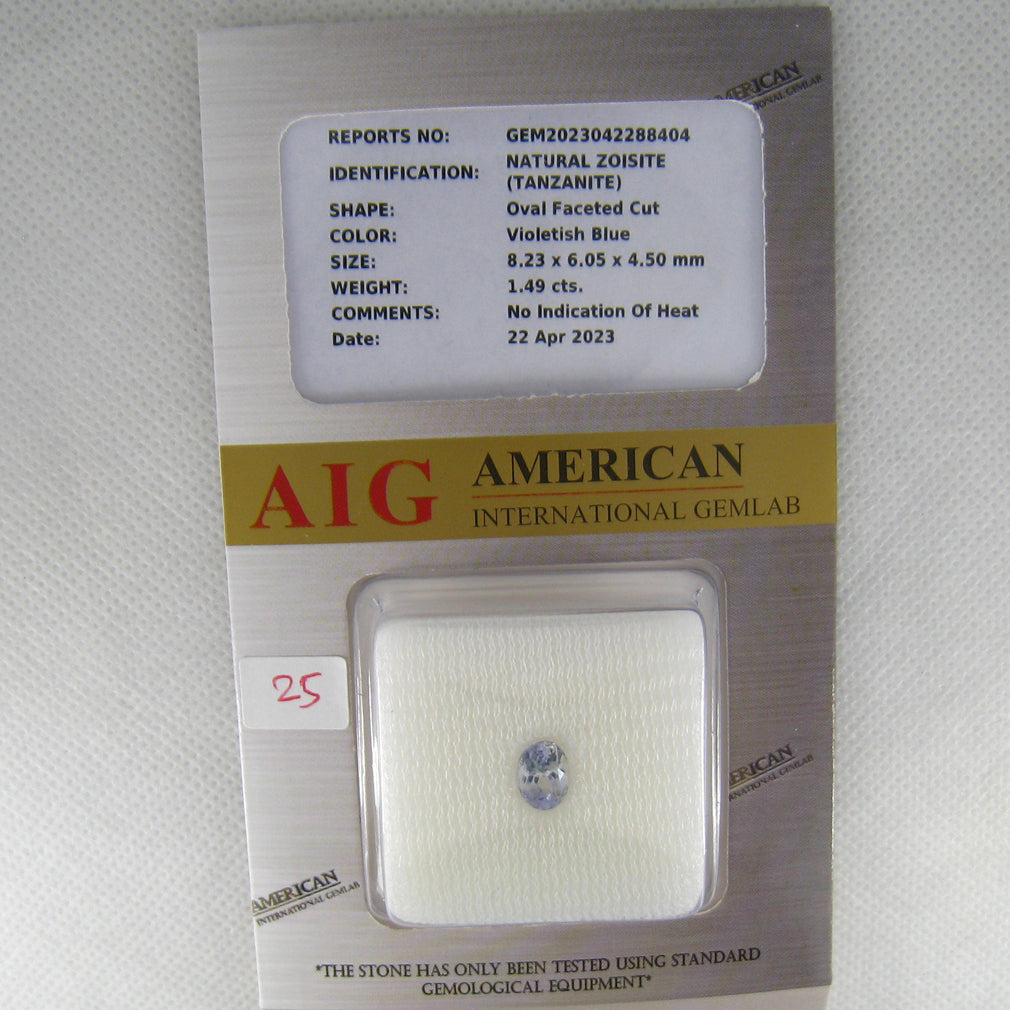 1.49 ct AIG Certified Oval (8.23 x 6.05 mm) Violetish Blue Tanzanite