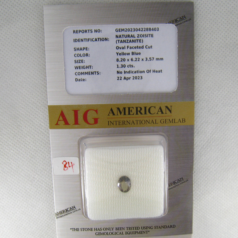 1.30 ct AIG Certified Oval(8.20 x 6.22 mm) Natural Blue Yellow Tanzanite