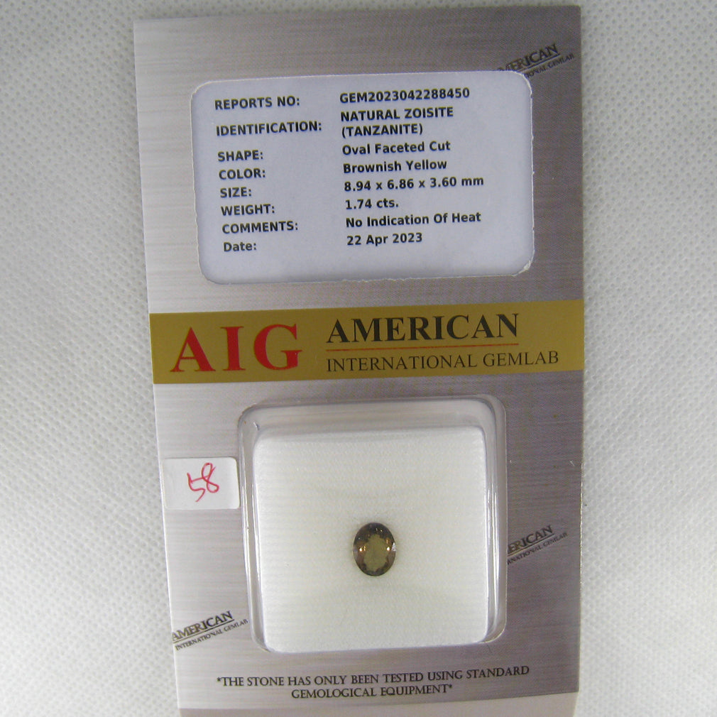 1.74 ct AIG Certified Very good Oval(8.94 x 6.86 mm) Brownish Yellow Tanzanite