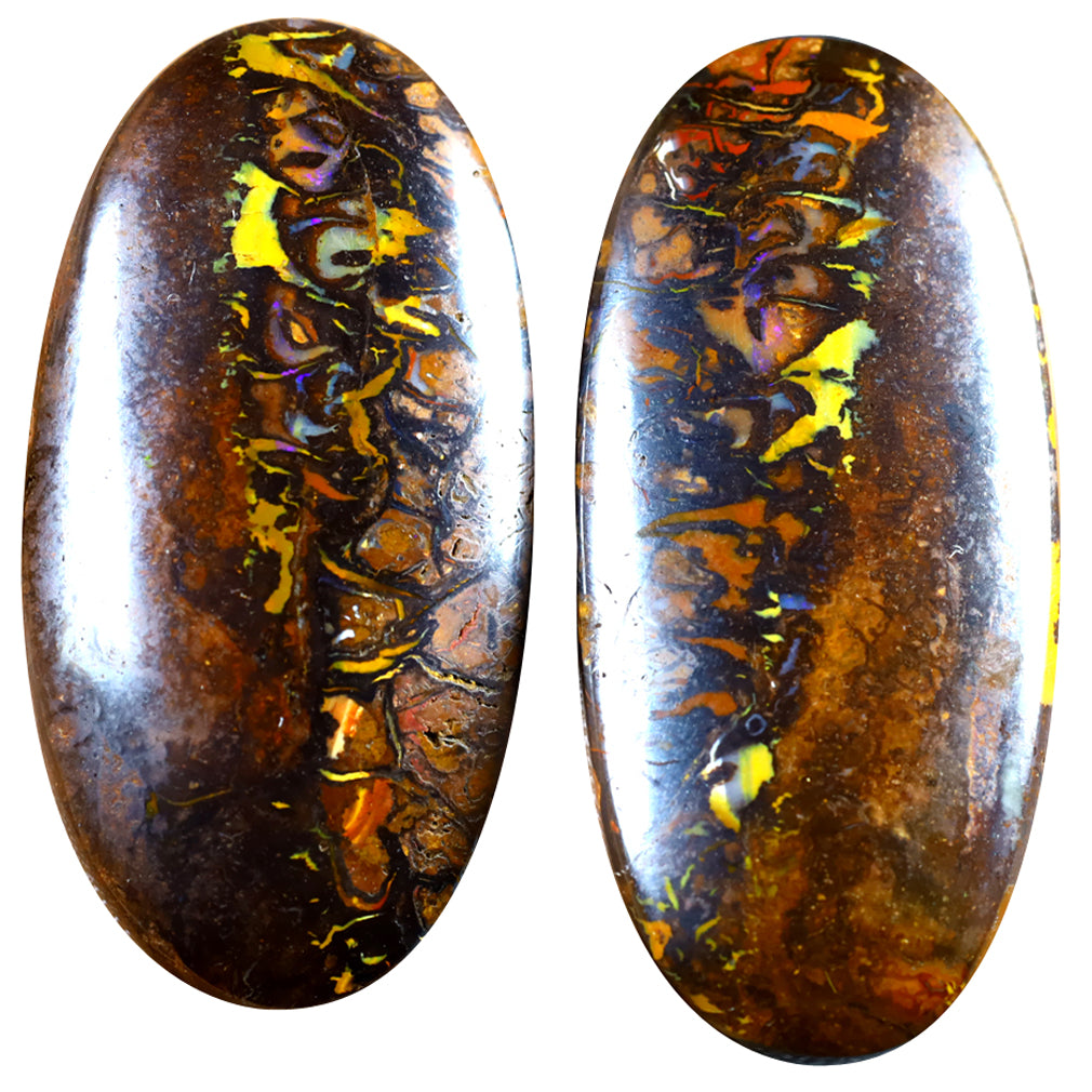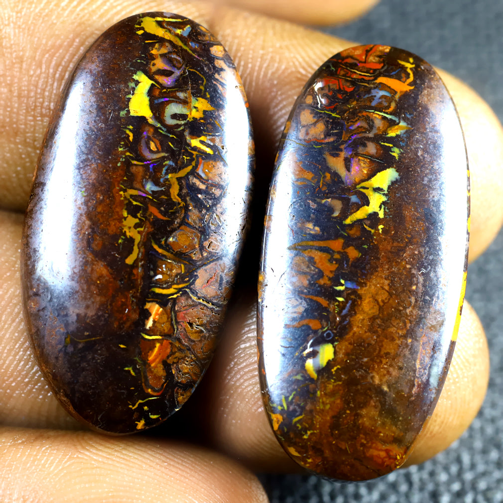 43.69 ct RARE! (2pcs) MATCHING PAIR Cabochon (31.17 x 14.63 mm) Boulder Opal Gem