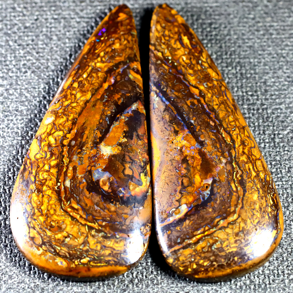 137.16 ct RARE!(2pcs)MATCHING PAIR Cabochon(61.97 x 27.82 mm)Boulder Opal Stone