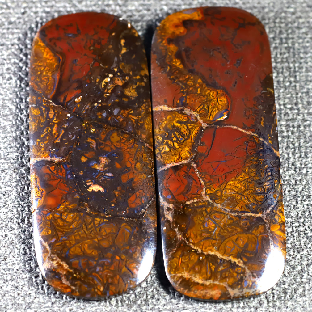 99.37ct (2pcs) Fantastic MATCHING PAIR Cabochon (51.05 x 20.26 mm) Boulder Opal